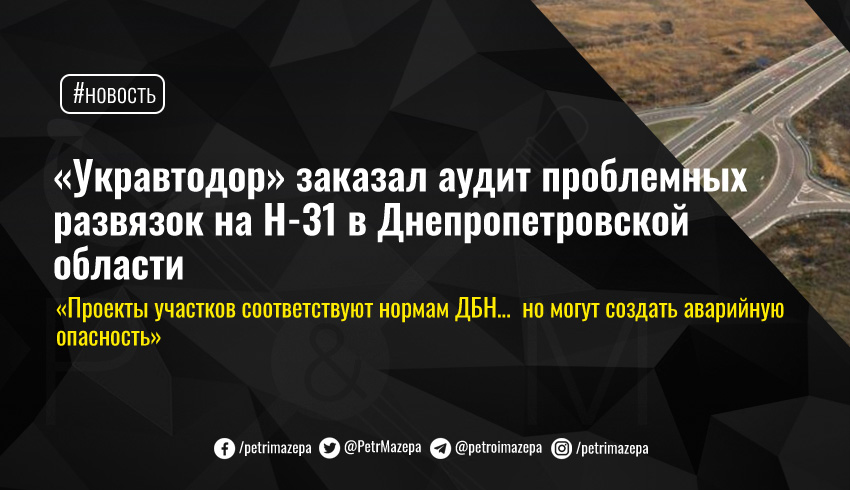 «Укравтодор» заказал аудит проблемных развязок на Н-31 в Днепропетровской области