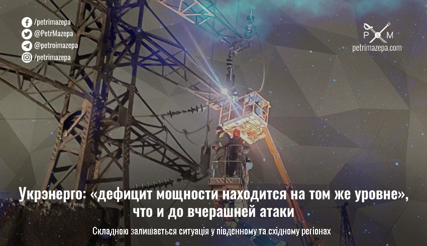 Укрэнерго: «дефицит мощности находится на том же уровне», что и до вчерашней атаки
