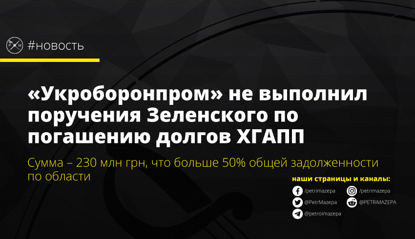«Укроборонпром» не выполнил поручения Зеленского по погашению долгов ХГАПП