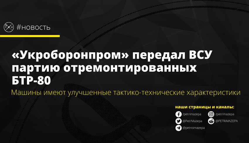 ГП «Николаевский бронетанковый завод» (входит в ГК «Укроборонпром») восстановило и модернизировало партию БТР-80 для госзаказчика. Теперь машины имеют улучшенные тактико-технические характеристики.