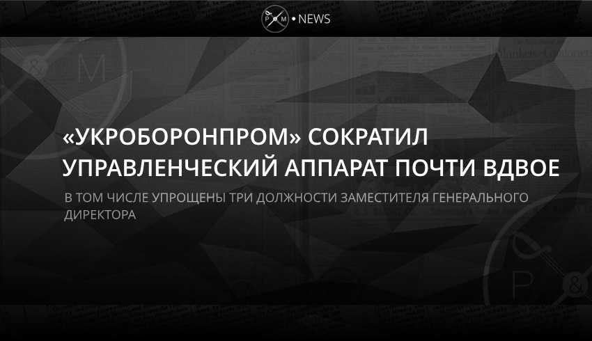 В госконцерне «Укроборонпром» провели запланированные реформы и утвержденную Наблюдательным советом оптимизацию внутренней структуры. В результате кадровый состав управленческого аппарата сократили на 40% с сохранением необходимой функциональности. В том числе сокращены три должности заместителя генерального директора.