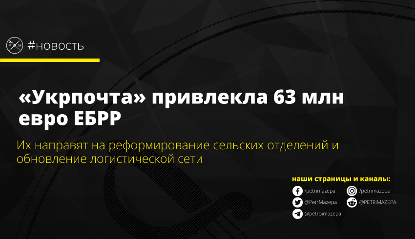 «Укрпочта» привлекла 63 млн евро кредита Европейского банка реконструкции и развития (ЕБРР) на обновление логистической сети и реформирование сельских отделений.