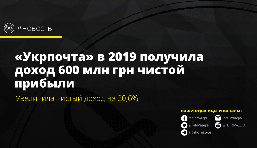 «Укрпочта» в 2019 получила доход 600 млн грн чистой прибыли