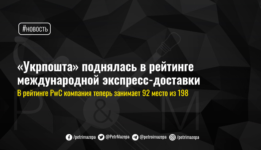 «Укрпошта» по итогам четвертого квартала 2020 года поднялась на 53 позиции в мировом рейтинге PricewaterhouseCoopers по качеству предоставления услуги международной экспресс-доставки EMS, заняв 92 место из 198 почтовых служб администраций.
