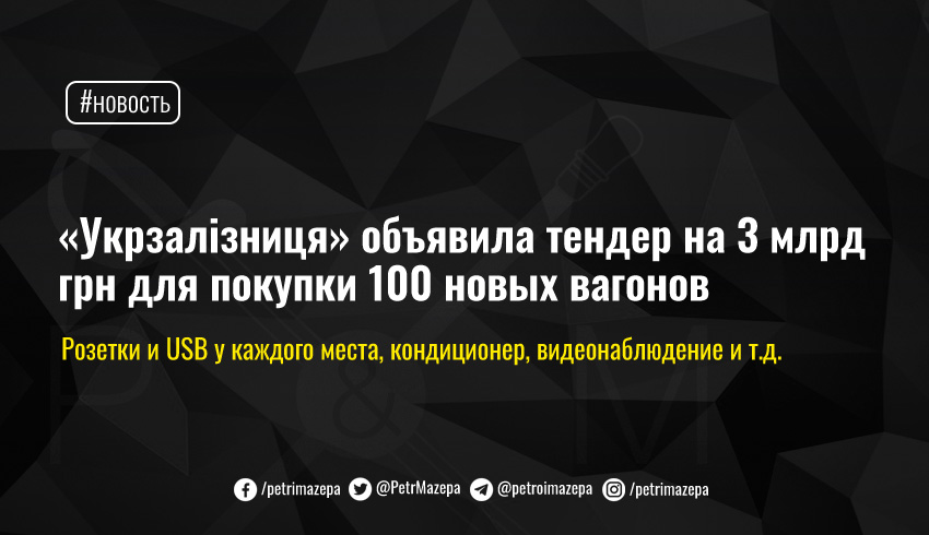 До конца марта «Укрзалізниця» будет принимать заявки, а 5 мая на «Prozorro. Публичные закупки» пройдет аукцион, на котором УЗ планирует найти компанию для производства 100 новых пассажирских вагонов.