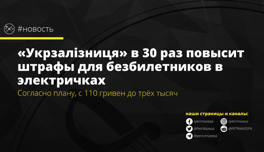 «Укрзалізниця» в 30 раз повысит штрафы для безбилетников в электричках