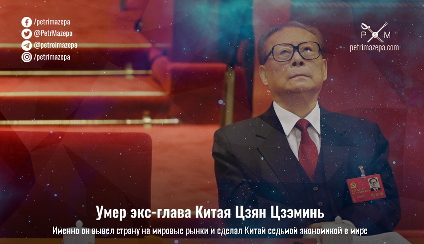 В Китае умер бывший лидер страны, выведший ее экономику на 7 место в мире — Цзян Цзэминь. Ему было 96 лет.