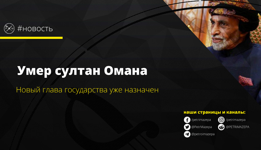 В пятницу вечером, на 80-ом году жизни, умер султан Омана Кабус бен Саид Аль Саид. Новым главой государства стал министр культуры и национального наследия Омана Хайсам бен Тарек Аль Саид.