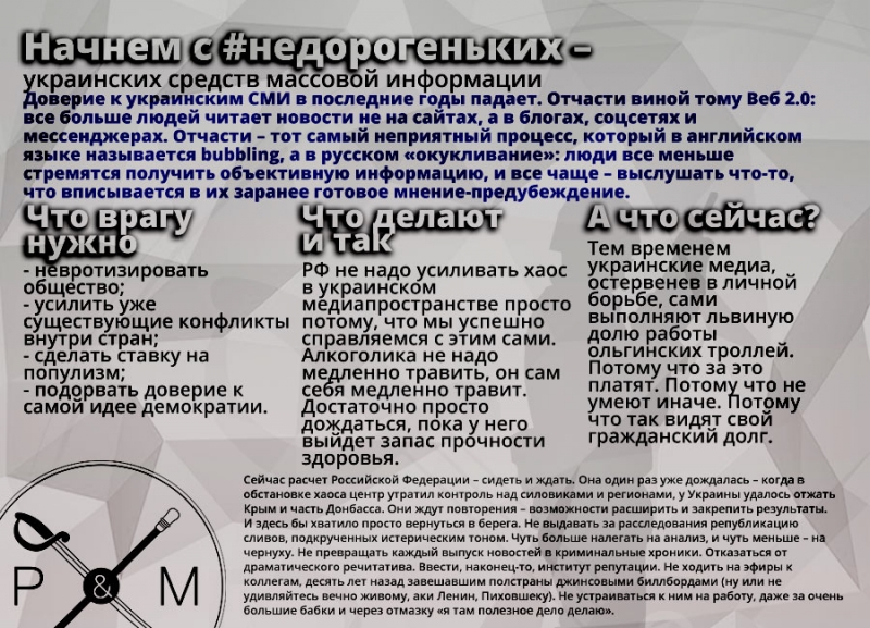 Начнём с #недорогеньких — с украинских средств массовой информации.
