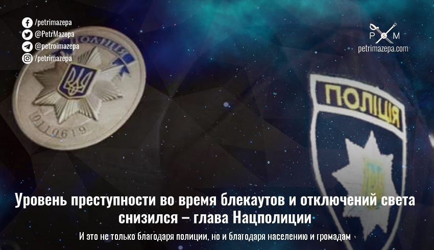 Глава Нацполиции сообщил, что во время отключений света и блэкаутов уровень преступности даже снизился, благодаря большему количеству полицейских на улицах, взаимодействию с населением и громадами.