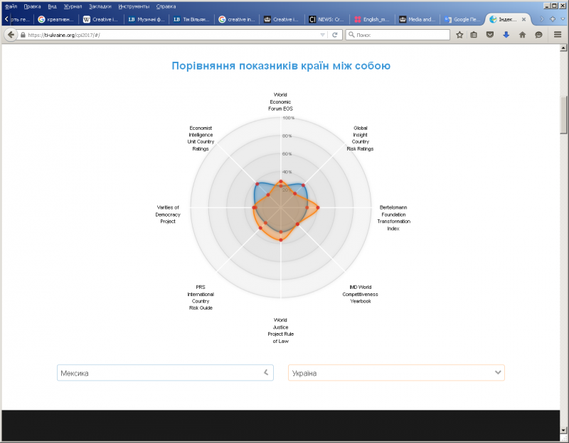 Вот, на том же сайте Трансперанси можете себе сравнительный график сделать. Синяя Мексика, мы оранжевые.