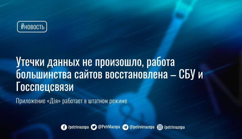 Утечки данных не произошло, работа большинства сайтов восстановлена – СБУ и Госспецсвязи