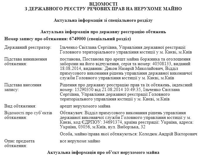 В группе It.happens публиковался скриншот документа, который якобы подтверждает арест всего недвижимого имущества Колодюка. Редакции MC.today не удалось проверить его достоверность.