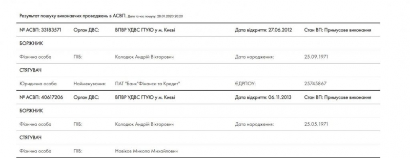 Никаких документов, которые бы указывали на эту цифру, редакции найти не удалось. Но в реестре исполнительных производств действительно есть данные про долг перед банком «Финансы и кредит». Его сумма – 730 тыс. грн.