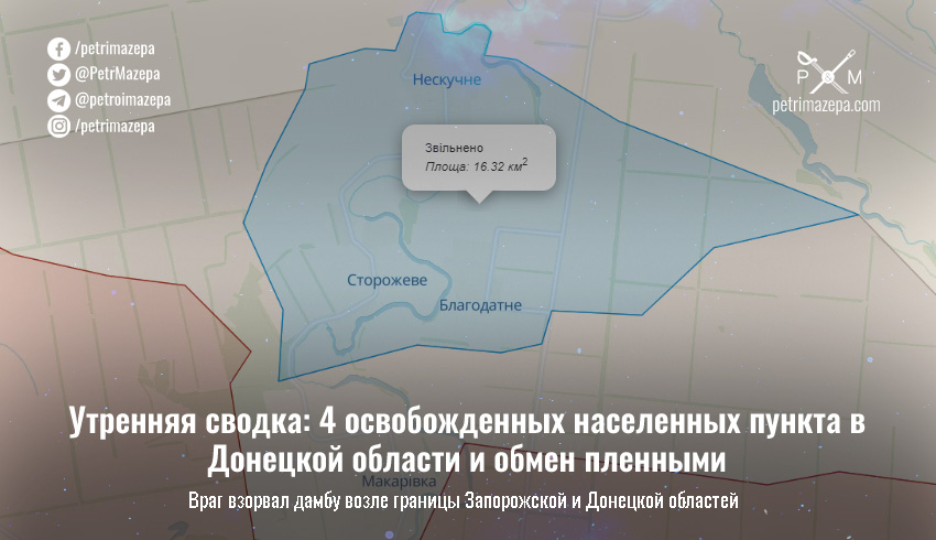 Утренняя сводка: 4 освобожденных населенных пункта в Донецкой области и обмен пленными