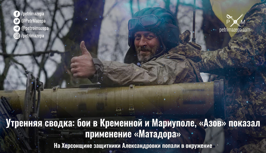 Утренняя сводка: бои в Кременной и Мариуполе, «Азов» показал применение «Матадора»