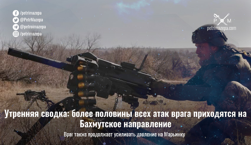 Утренняя сводка: более половины всех атак врага приходятся на Бахмутское направление