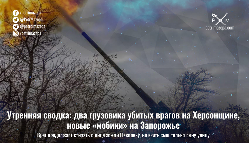 Утренняя сводка: два грузовика убитых врагов на Херсонщине, новые «мобики» на Запорожье