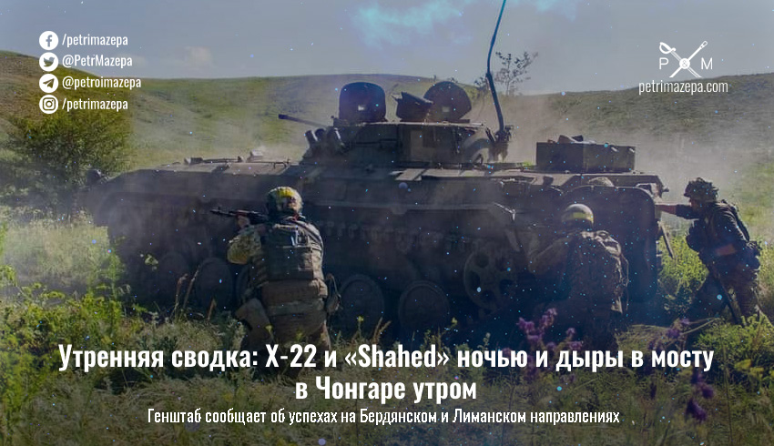 Утренняя сводка: Х-22 и «Shahed» ночью и дыры в мосту в Чонгаре утром
