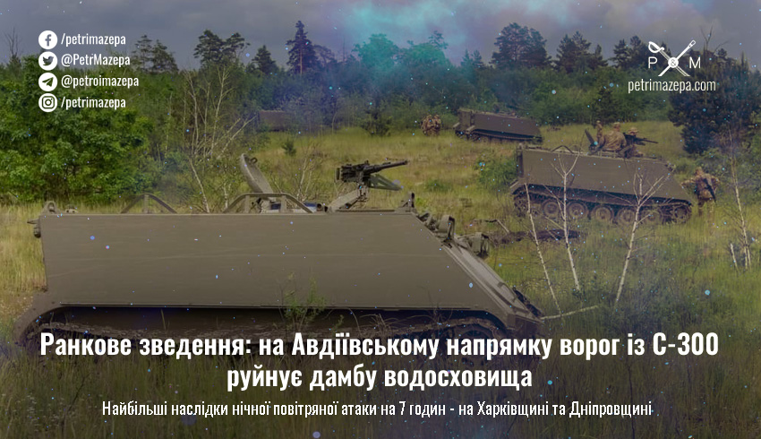 Утренняя сводка: на Авдеевском направлении враг из С-300 разрушает дамбу водохранилища