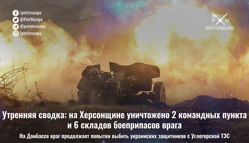 Утренняя сводка: на Херсонщине уничтожено 2 командных пункта и 6 складов боеприпасов врага