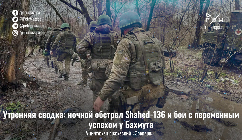 Утренняя сводка: ночной обстрел Shahed-136 и бои с переменным успехом у Бахмута