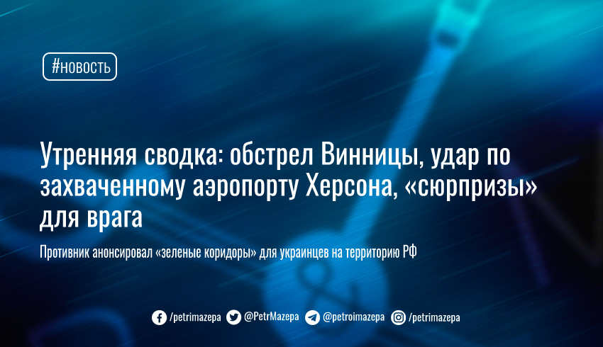 Утренняя сводка: обстрел Винницы, удар по захваченному аэропорту Херсона, «сюрпризы» для врага