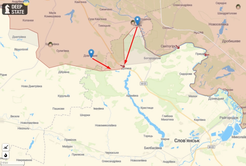 На Славянском направлении, с целью поиска слабых мест в обороне наших подразделений, оккупанты вели штурмовые действия в направлениях Довгенькое — Мазановка и Пасека — Долина, успеха не имели. Обстрелы были в районах н.п. Андреевка, Норцовка, Богородичное, Чеполь, Большая Камышеваха, Петровское и Гусаровка.