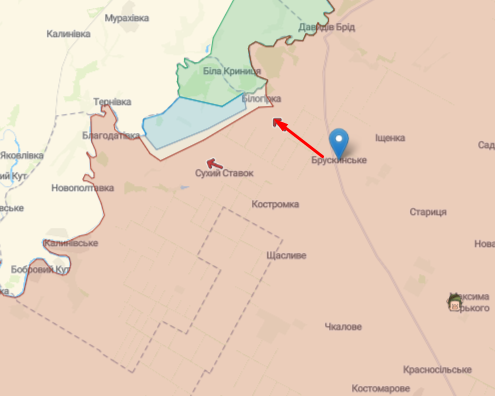 На Южнобужском направлении противник сосредотачивает усилия на удержании занятых рубежей и возвращении утраченных позиций на Криворожском направлении. Вел обстрелы в районах 9 н.п. и нанес авиаудар возле Новопетровки. Украинские воины отразили штурм в направлении Брускинское — Белогорка, оккупанты понесли потери и отошли. Накануне в ОК «Юг» сообщали об освобождении двух н.п. в этом районе (голубая зона на карте).