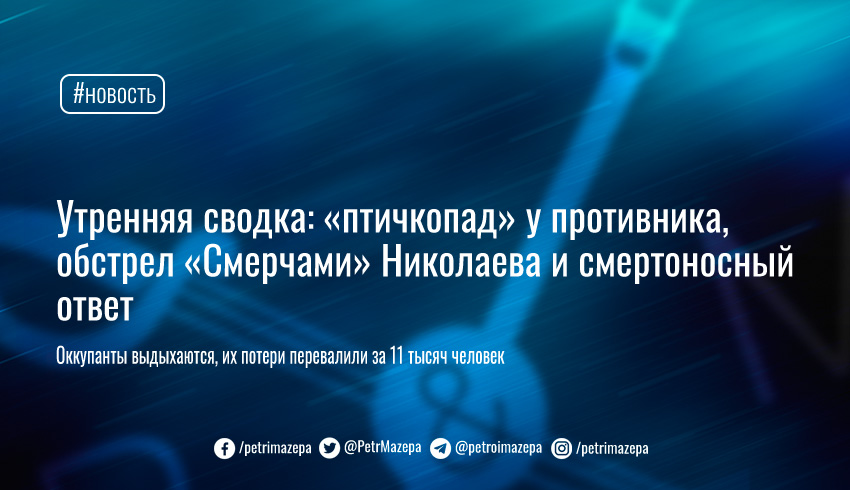 Утренняя сводка: «птичкопад» у противника, обстрел «Смерчами» Николаева и смертоносный ответ