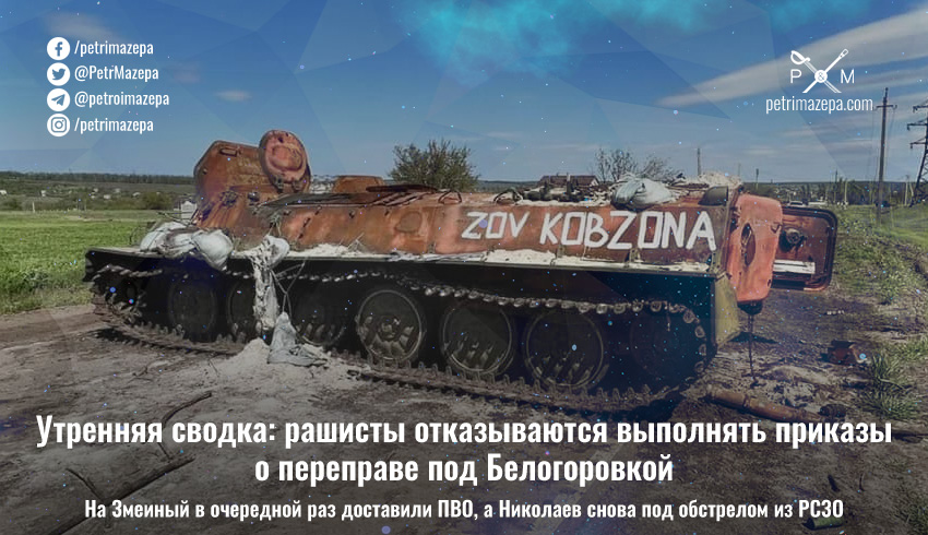 Утренняя сводка: рашисты отказываются выполнять приказы о переправе под Белогоровкой