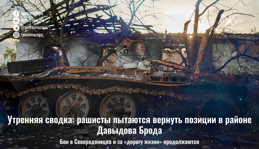 - Вечерняя сводка 6 июня — на Славянском направлении оккупанты готовятся возобновить штурм. А у Довгенького у них снова не вышло. Продолжаются бои в Северодонецке и за «дорогу жизни»