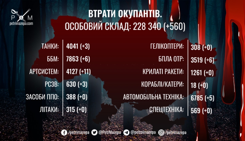 Начались 492-е сутки широкомасштабной вооруженной агрессии российской федерации против нашей страны. Сегодня ночью российская федерация нанесла очередной ракетно-авиационный удар — била БПЛА типа «Shahed» и ЗУР из С-300. Еще 6 ЗУР из С-300 враг вчера выпустил по объектам гражданской инфраструктуры городов Запорожье и Чугуев. Кроме того, за прошедшие сутки враг нанес 29 авиационных ударов, совершил 60 обстрелов из РСЗО по позициям наших войск и населенным пунктам.