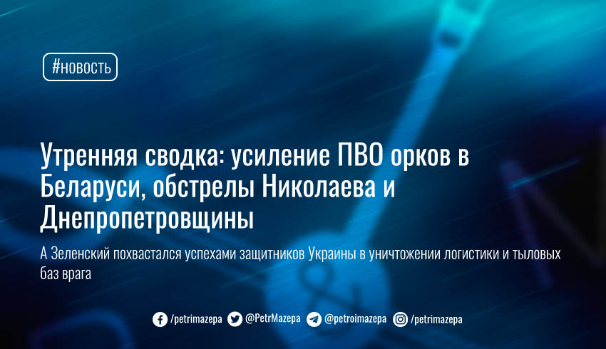 Утренняя сводка: усиление ПВО орков в Беларуси, обстрелы Николаева и Днепропетровщины