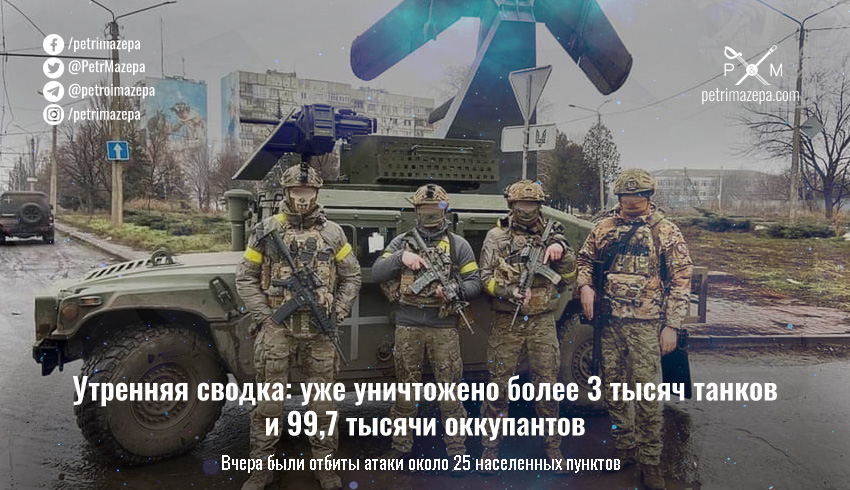 Утренняя сводка: уже уничтожено более 3 тысяч танков и 99,7 тысячи оккупантов