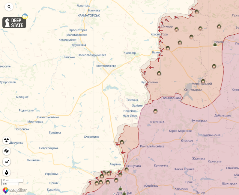 По данным DeepState, на Сватовском направлении у оккупантов трудности, поэтому на одном из участков наемникам разрешено расстреливать спасающихся бегством мобилизованных рф. На Бахмутском — враг захватил Клещиевку, ЛБС там на уточнении. Также враг пытается продавить в Бахмуте в районе дамбы и в частном секторе, результат неизвестен. Рашисты продолжают захватывать станцию Соль, продолжаются бои за Красную Гору и Благодатное. Враг перебросил силы свежих мобилизованных соединений на Спорное и Белогоровку. На Авдеевском направлении — сложная ситуация в Красногоровке (возле Авдеевки), враг последние десять дней существенно усилил давление на этом участке.