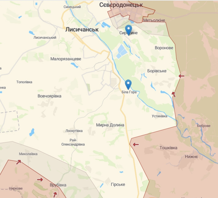 На Северодонецком направлении враг продолжает обстрелы подразделений наших войск из артиллерии разных калибров. Нанес авиаудары вблизи Устиновки, Горного и Лисичанска. Не прекращает штурмовые действия для установления полного контроля над городом Северодонецк. Кроме этого города наши воины успешно противодействуют штурмам в районах н.п. Сиротино и Белая Гора.