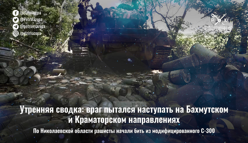 Начались 136-е сутки героического противостояния украинской нации российскому военному вторжению. Рашисты все еще пытаются дозахватить Луганскую область (бои на Краматорском направлении), а также – продвинуться дальше от Светлодарской дуги к Бахмуту.