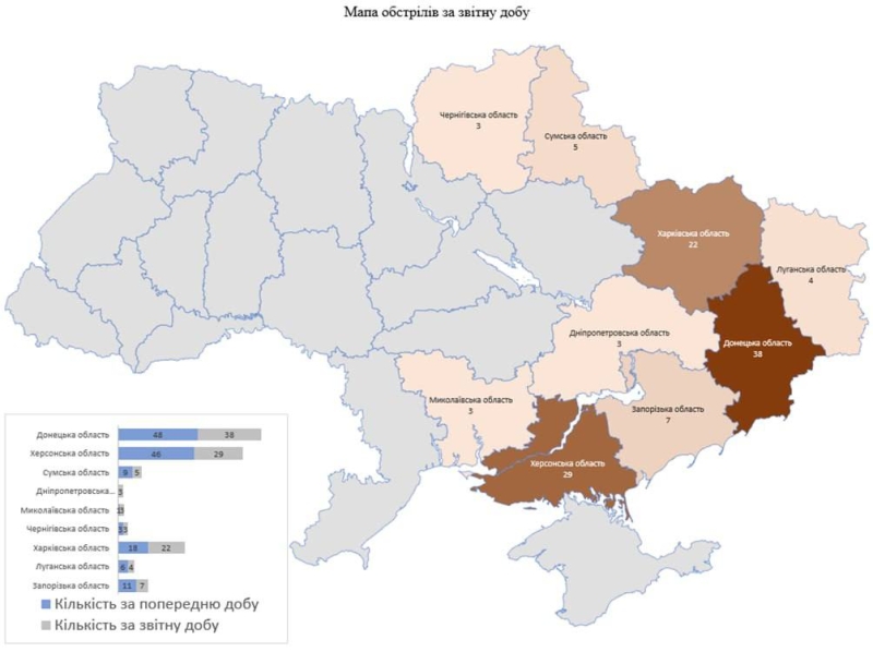 Всего вчера врагом осуществлены обстрелы 114 населенных пунктов, подтверждено поражение 40 объектов инфраструктуры.