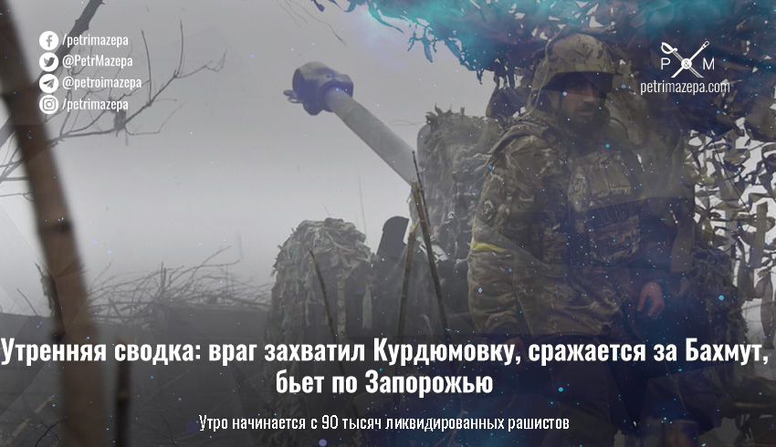 Утренняя сводка: враг захватил Курдюмовку, сражается за Бахмут, бьет по Запорожью