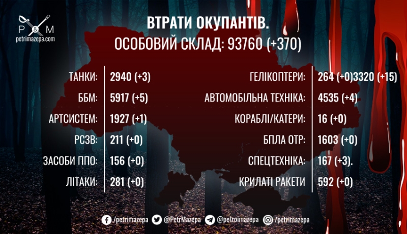 Потери врага по состоянию на сегодняшнее утро выглядят так: