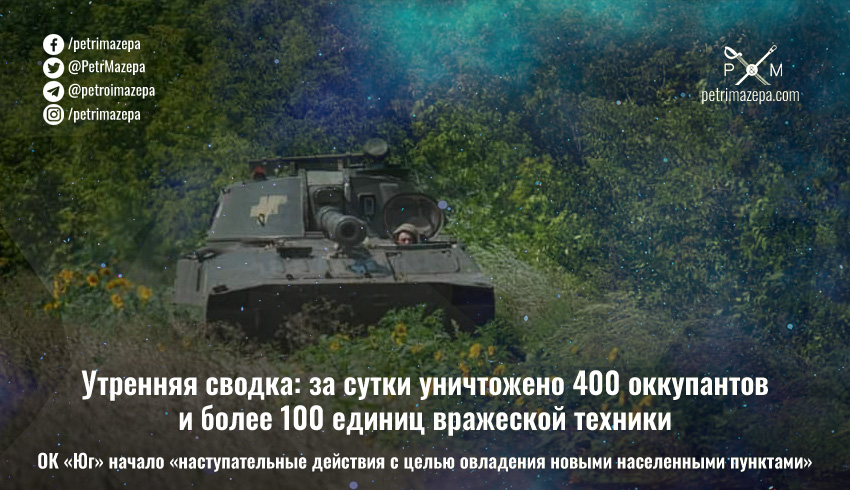 Утренняя сводка: за сутки уничтожено 400 оккупантов и более 100 единиц вражеской техники