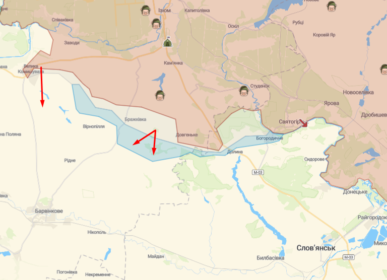 На Славянском направлении рашисты вели обстрелы из артиллерии разных типов в районах неподалеку от Дибровного, Довгенького, Вернополья, Сулиговки, Чепиля, Мазановки и Богородичного. А штурмовые действия враг пытался вести на направлениях Барабашевка — Карнауховка, Сулиговка — Дибривно, Сулиговка — Новая Дмитровка. Таким образом враг пытается вернуть контроль над потерянными недавно позициями.