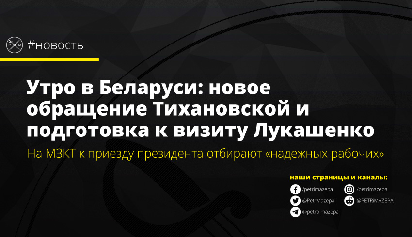 Утро в Беларуси: новое обращение Тихановской и подготовка к визиту Лукашенко