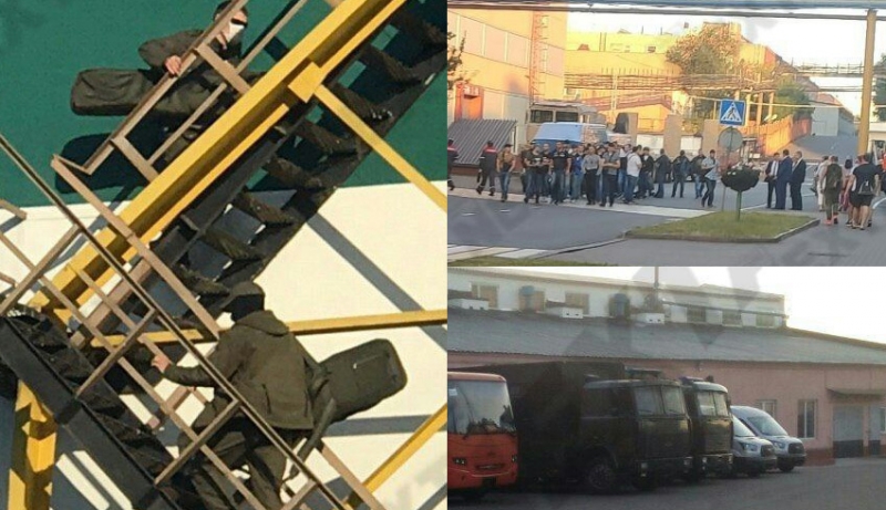 Подготовка проходит примерно так – на крыши заходят снайпера, а среди рабочих отбирают «самых надежных». Ну и автозаки подогнали на всякий случай.