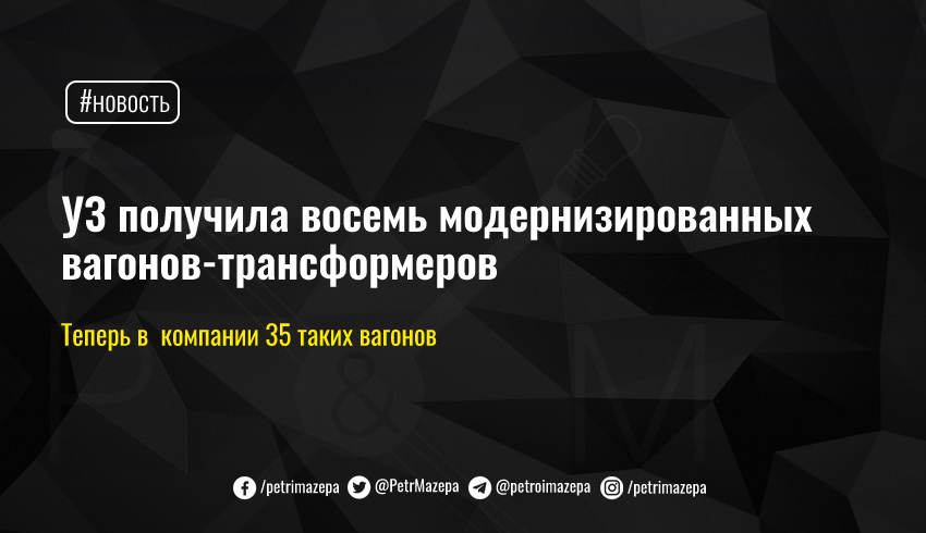 АО «Укрзалізниця» получила восемь вагонов-трансформеров, которые прошли капитальный ремонт. В вагонах отремонтирован кузов, установлен крышной кондиционер, новые окна со стеклопакетами, пол и утепление. На окнах установлены роллетные системы, а в вагонах – биотуалеты.