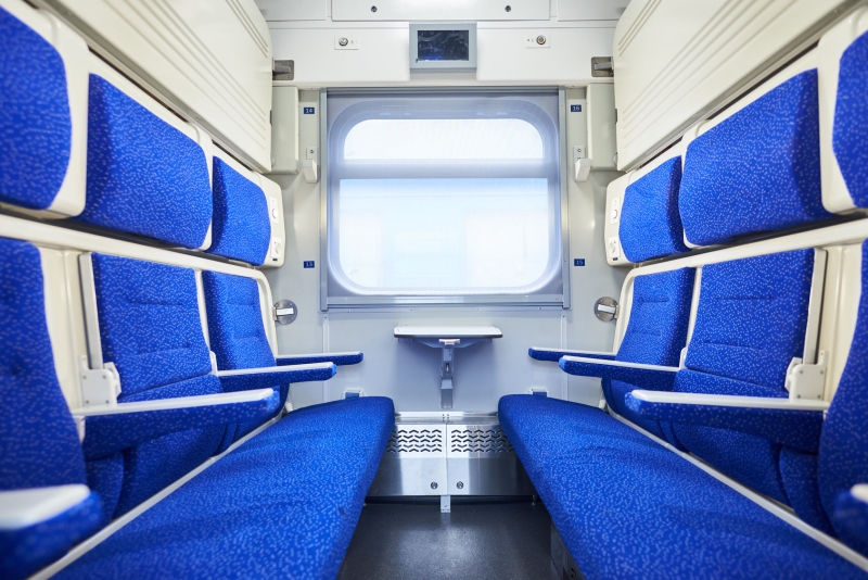 Всего на сегодняшний день в парке УЗ 35 вагонов такого типа, используются они в поездах №38/738 Киев - Запорожье и №7/749 Киев - Ивано-Франковск. Особенностью и преимуществом таких вагонов является возможность их использования как на ночных маршрутах, так и на дневных, уточняет компания. В ночном режиме вагона нижние и верхние полки купе используются как спальные места, в дневном - нижние полки купе трансформируются в места для сидения.