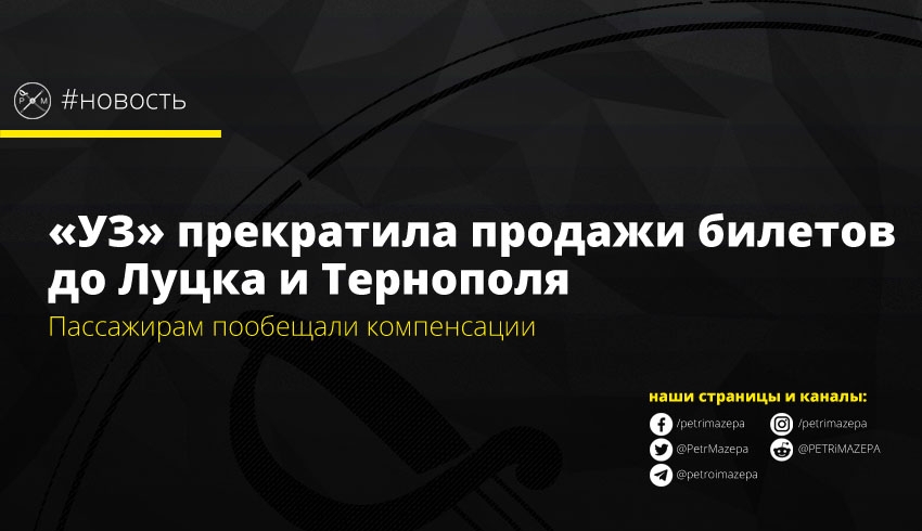 «УЗ» прекратила продажи билетов до Луцка и Тернополя