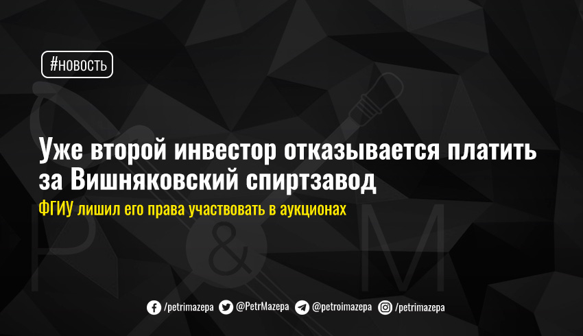 Уже второй инвестор отказывается платить за Вишняковский спиртзавод