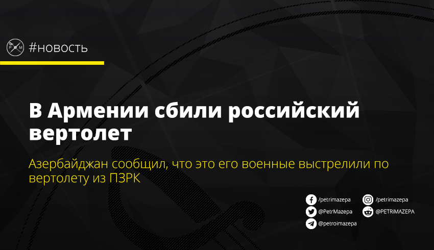 Минобороны указывает, что вертолет сопровождал автоколонну, двигавшуюся в сторону российской военной базы, расположенной в Армении. Его обстреляли с земли из ПЗРК. «Командованием 102-й военной базы России ведется разбирательство по установлению принадлежности стрелявших», - заявило ведомство.